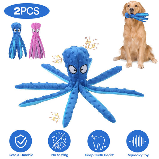 2Pcs Squeaky Dog Toys No Stuffing Crinkle Plush Octopus Dog Teething Toy Interactive Dog Toy Dog Training Toy For Puppy Small Medium Large Dog