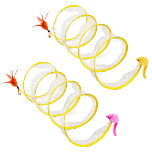 2Pcs Foldable Cat Tunnel with Bell Feather Mouse Toys Collapsible Indoor Cat Spring Tube with Interactive Toy for Kittens Cats