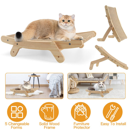 5 Changeable Forms Cardboard Cat Scratcher Double-Sided Cat Scratching Pad With Solid Wood Structure Indoor Reversible Cat Scratcher Lounge
