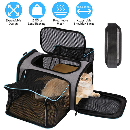 Expandable Pet Carrier Airline Approved Cat Dog Carrier Cat Collapsible Soft CarrierÊBag with Removable Fleece Pad Pockets Breathable Mesh Adjustable