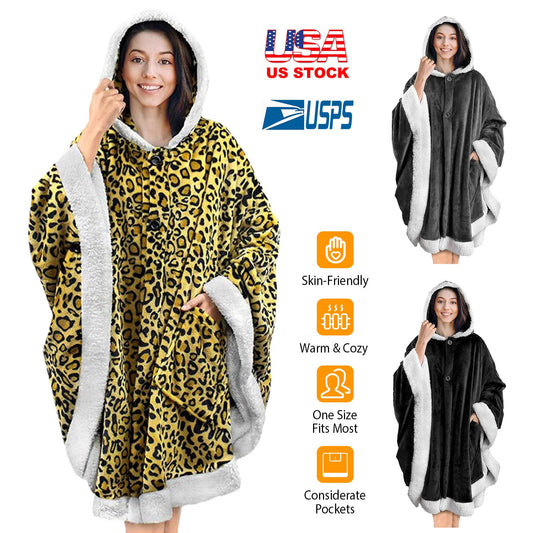 Hoodie Blanket Wrap Wearable Hoodie Snuggle Robe Sweatshirt Soft Lined Cuddle Poncho Cape w/ Hat 2 Pockets Buttons