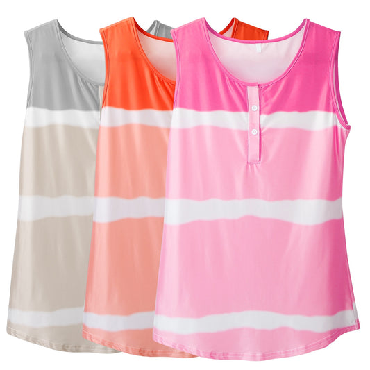 Women Tie-dye Sleeveless Tank Tops Summer Loose T Shirts Tops Button Down Shirts Vest Blouse Plus Size