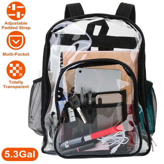 Clear Backpack Heavy Duty Transparent Book Bag Waterproof PVC Clear Backpack 5.3Gal with Reinforced Strap for College Workplace