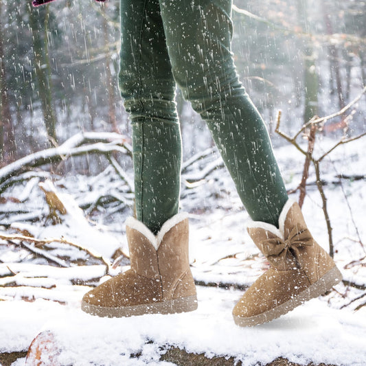 Women Ladies Snow Boots Super Soft Fabric Mid-Calf Winter Shoes Thickened Plush Warm Lining Shoes w/ Anti-slip Rubber Base Bowknot