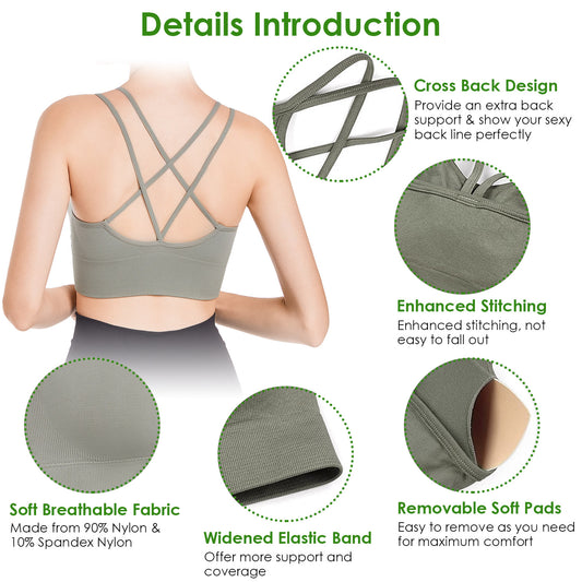 3Packs Women Cross Back Sport Bras Padded StrappyÊMedium Support Bras SexyÊFitnessÊTank Tops with Removable Pads for Gym Yoga Workout Running
