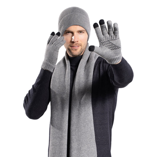 Winter Knitted Hat Scarf Gloves 3Pcs Winter Warm Beanie and Touch Screen Gloves Long Neck Scarf Set Knit Beanie Skull Cap Neck Warmer Anti-Slip Mitten