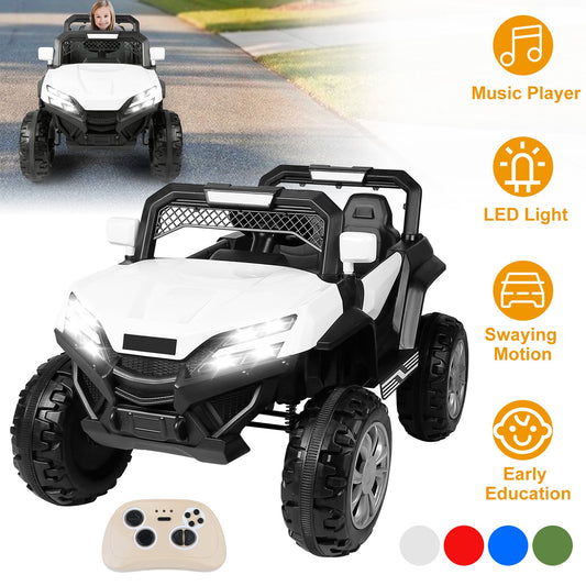 Electric Kids Ride-On Car SUV w/ Parental Remote Control Music Horn LED Lights Swaying Early Education Function Kid Aged 1-6 Years Old