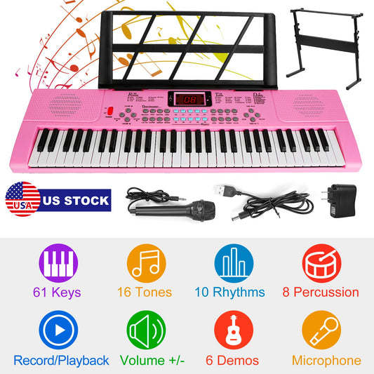 61 Keys Digital Music Electronic Keyboard Electric Musical Piano Instrument Kids Learning Keyboard w/ Stand Microphone For Beginners