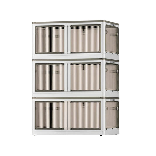 3Pcs Foldable Storage Bins with Lid 4 Doors Collapsible Stackable Closet Organizer Containers with Lock 4Pcs Wheels