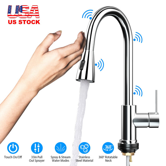 Automatic Touch Sensor Faucet Single Handle Pull Out Sink Faucet with Hot Cold Water Control