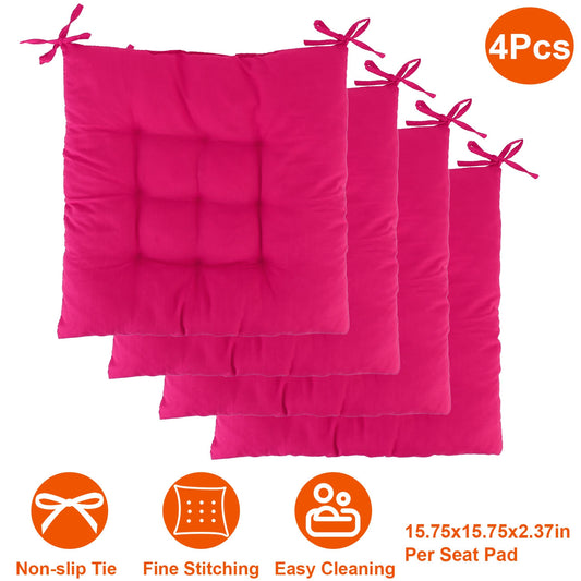 4Pcs Chair Cushion Pads Pillow 15.75x15.75x2.37in Soft Tie On Square Sitting Mats For Home Office Car Sitting Travel