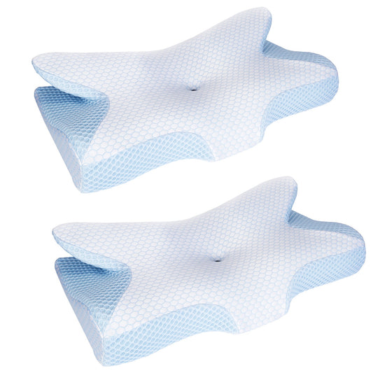 2Pcs Memory Foam Pillow Neck Support Pillow for Pain Relief Sleeping Ergonomic Contour Orthopedic Support Side Back Stomach Sleeper