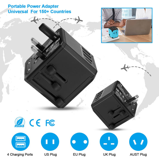 Universal Travel Power Adapter All in One AC Power Plug Adapter International Wall Charger with 4 Charging Ports for Phones Tablets Cameras US UK EU A