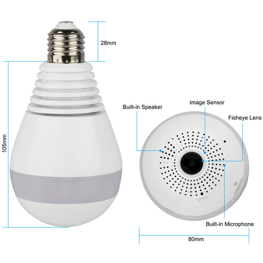 WiFi Light Bulb Camera 960P Security Camera 360¡ Fisheye Lens Panoramic Motion Detection IR Night Vision