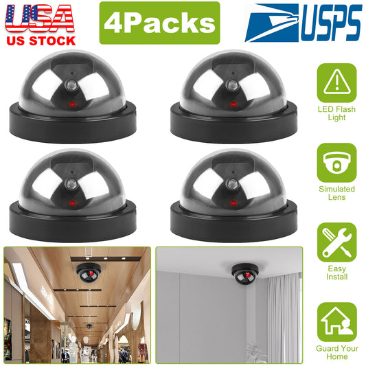 4Packs Fake Security Camera Dome Dummy Camera w/ Realistic Looking Flash LED Lights Simulated Surveillance Security for Home Shop Factory