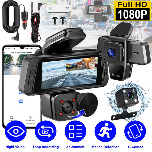 1080P FHD 3 Channel WiFi Dash Cam 170¡ Wide Angle Triple Car Camera With IR Night G-Sensor Motion Detection Loop Recording App Control Support 128G Ma
