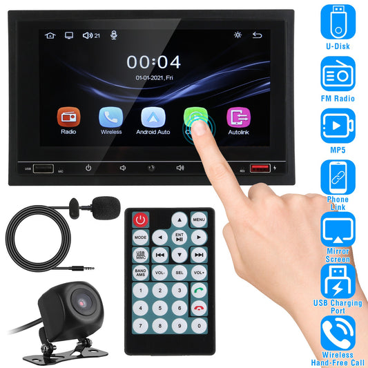 7In Universal Wireless Car MP5 Player 1080P Video Player Stereo Audio FM Radio Aux/USB Input with Rear View Camera Remote Control