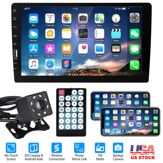 9in Car MP5 Stereo Player Touch Screen 1080P Wireless Car Radio FM USB AUX Back up Camera Mirror Link Remote Control