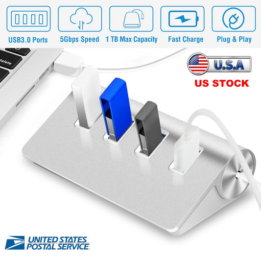 4 Ports USB3.0 Hub 5Gbps USB3.0 Aluminum Expansion Hub Splitter File Video Date Reader Transmission For U Disk Flash Drive Mouse Digital Camera