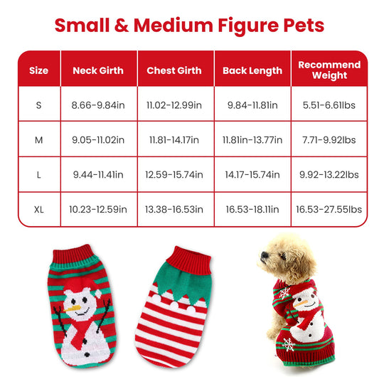 Pet Christmas Turtleneck Sweater Dog Cat Christmas Clothes Snowman Stripes Costume Winter Holiday Sweater for Small Medium Kitten Puppy Cats Dogs