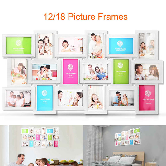 12/18 Pictures Frames Collage for Photos in 4" x 6" Glass Protection Display Wall Mounting Gallery Home Decor Kit
