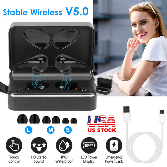 True Wireless V5.0 Earbuds IPX7 Waterproof Touch Control In-Ear Stereo Headsets TWS Noise Canceling Earbuds w/ LED Display Magnetic Charging Dock