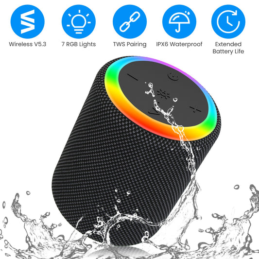 Portable Wireless Speaker Outdoor Party Speaker Mini Waterproof Speaker with 7 RGB Lights Support Calling TWS AUX In MMC Card Input