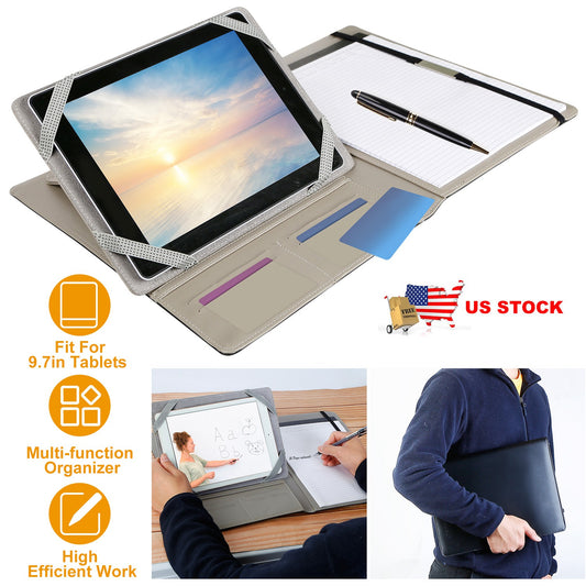 Organizer Case For 9.7in Tablet PC Business Tablet Portfolio w/ A5 Notepad Paper Pad Card Holder