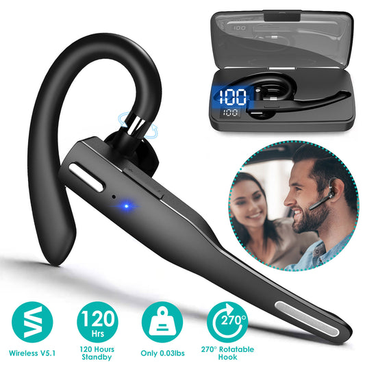 Unilateral Wireless V5.1 Business Earpiece with Charging Case Rechargeable Wireless in-Ear Headset with Hook for Car Driving Phone Call Office