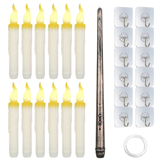 12Pcs Flameless Floating Candles LED Magic Hanging Candle Light Battery Operated Flickering Warm Light Window Candle With Magic Wand Remote for Hallow