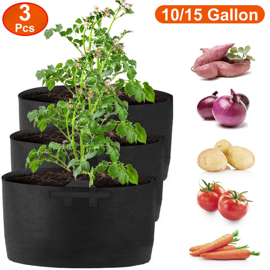 3 Pack Plant Grow Bags Potato Vegetable Planter Bags Breathable Planting Fabric Pots 10Gallons
