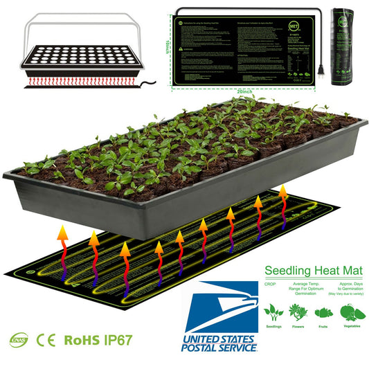 10" x 20" Seedling Heat Mat IP67 Waterproof Plant Warm Hydroponic Heating Pad 17.5W for Seed Germination Cloning Plant Propagation