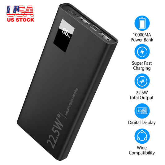 10000Mah Power Bank Portable Charger External Battery Pack 22.5W Super Fast Charging PD &QC 3.0 with LED Display Fit for iPhone Samsung