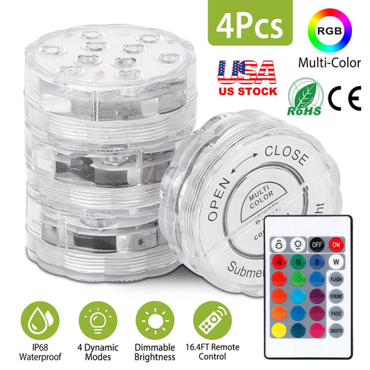4Pcs Submersible RGB LED Lights IP68 Waterproof Underwater Color Changing Lamps Remote Control Battery Operated Floral Light For Vase Fountain Aquariu