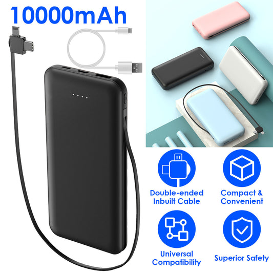 10000mAh Power Bank Portable Phone Charger External Battery Pack with LT & Type-C Double-ended Cable Type-C USB Cable Fit For IOSPhone 14 Android And