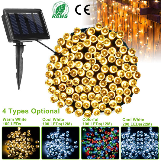 12M 100 LEDs Solar String Fairy Lights Outdoor String Lamps Garden Xmas Decor Lamp