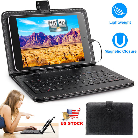 7.9in Protective Keyboard Case w/ Keyboard PU Leather Back Stand Tablet Cover via USB 2.0 Cable