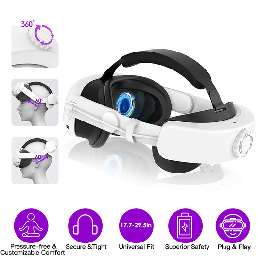 Adjustable Head Strap Compatible with Oculus/Meta Quest 3 VR Accessories Charging Headband Pressure-free Elite Strap with 6000mAh Rechargeable Battery