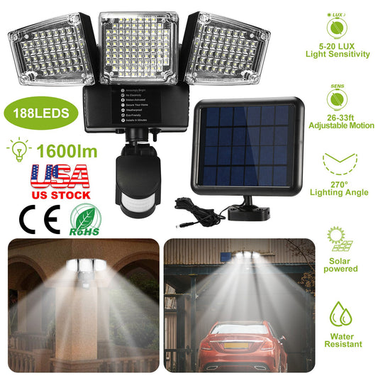 Solar Lights Outdoor 188 LEDs 1600lm Solar Security Lights Motion Sensor Lights 270¡Lighting Angle Waterproof Dusk to Dawn Solar Wall Lights 360¡Rotat
