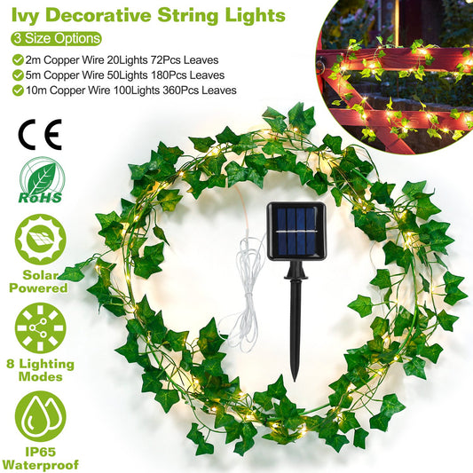 Artificial Ivy Solar Powered String Lights 72Pcs Leaves 20Pcs LED Beads Fake Leaf Fairy Lamps IP65 Waterproof DIY Decorative Night Light For Wedding K