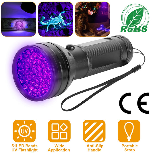 Black Light UV Flashlight 51 LED 395nm Ultraviolet Torch Pet Urine Detector Light For Scorpion Hunting Banknote