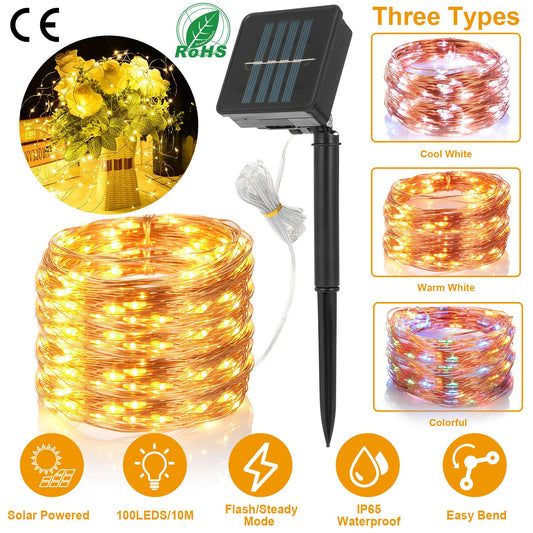 100 LEDs Solar String Lights Outdoor IP65 Waterproof Copper Wire String Lights Solar LED Fairy Lamps Wedding Party Festival