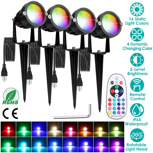 4Pcs Landscape Lights Color Changing Landscape Spotlight IP65 Waterproof RGBW LED Colorful Stake Light with Remote Control 16 Color 4 Dynamic Light Mo