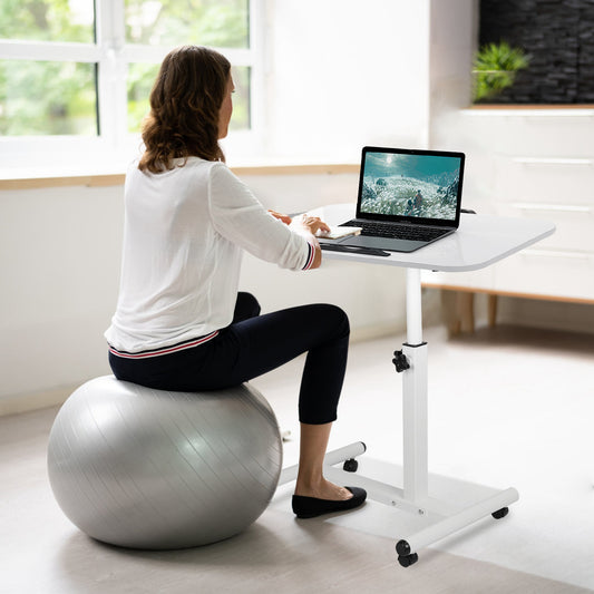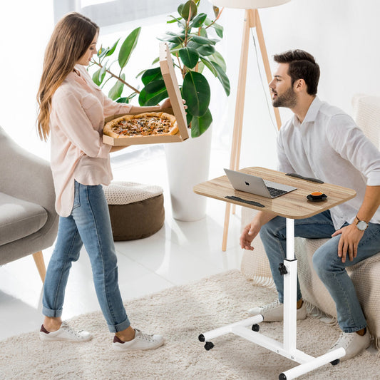Rolling Laptop Table Portable Computer Desk Movable Table with Adjustable Height Tilting Angle