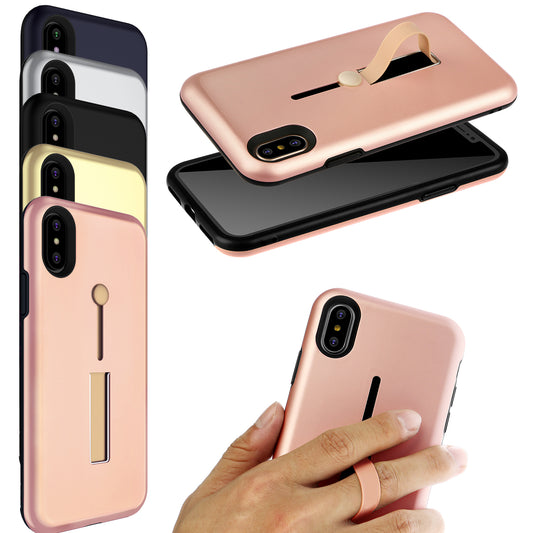 Finger Strap Phone Case for iPhone X Drop-protection Finger Ring Rugged Phone Case with Kickstand Dual Layer Case