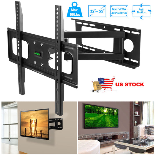 TV Wall Mount Swivel Tilt Full-Motion Articulating Wall Rack For 32in-55in TVs 99lbs Max Bearing Support VESA Up To 400x400mm