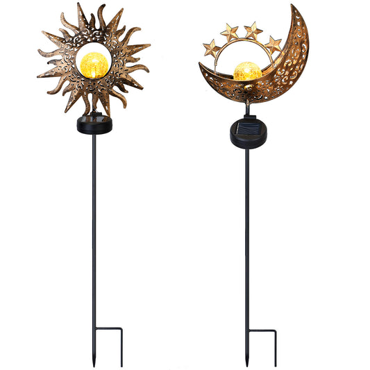 Solar Powered Sun Stake Lamp IP54 Waterproof Decorative Lamp Crackle Glass Globe Stake Lights For Garden Lawn Yard Driveway