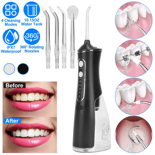 Portable Water Dental Flosser Cordless Rechargeable Dental Oral Irrigator IPX7 Waterproof Teeth Cleaner with 4 Modes 4 Nozzles 10.15oz Detachable Wate