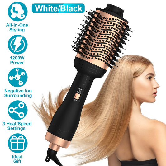 4 In 1 Hair Dryer Brush Curling Brush Hair Styler Volumizer Straightener Negative Ion Anti-frizz Hot-Air Hair Brush for All Hair Types Black White