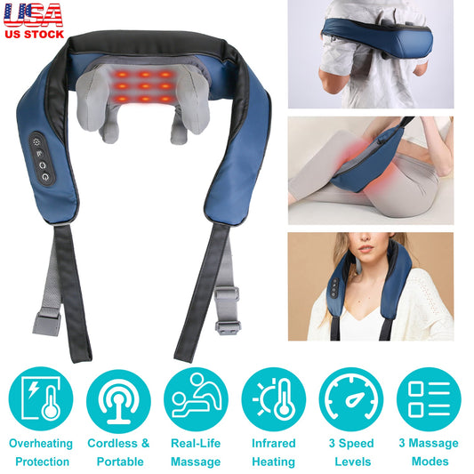 Electric Neck Shoulder Massager with Infrared Light Heating 3 Massage Modes Speeds Kneading Grasping Shiatsu Massage Pillow For Back Arms Thighs Relea